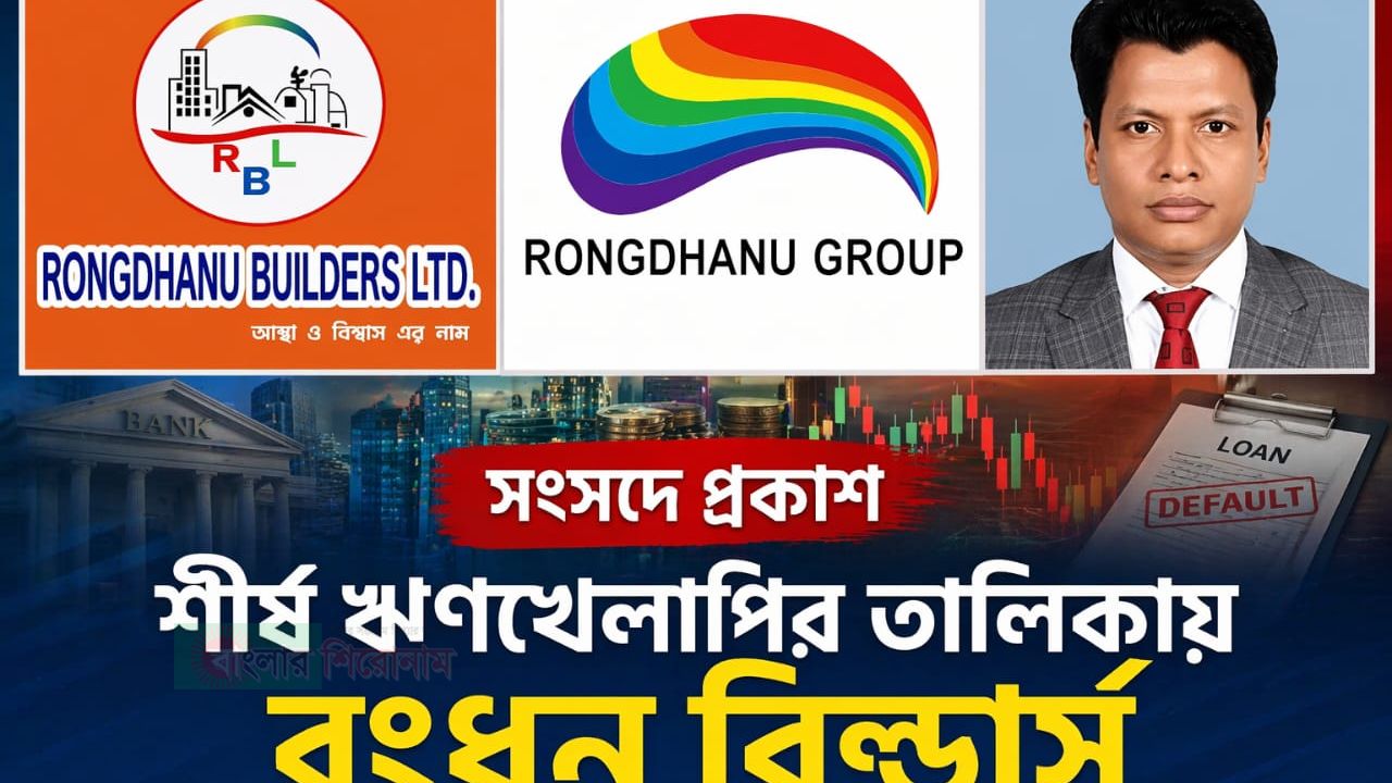 দেশের ব্যাংকিং খাতে ক্রমবর্ধমান খেলাপি ঋণের তালিকায় শীর্ষ ২০ প্রতিষ্ঠানের মধ্যে উঠে এসেছে রংধনু বিল্ডার্স (প্রা.) লিমিটেডের নাম। সোমবার (৬ এপ্রিল) জাতীয় সংসদে অর্থমন্ত্রী আমির খসরু মাহমুদ চৌধুরী এ তথ্য প্রকাশ করেন।