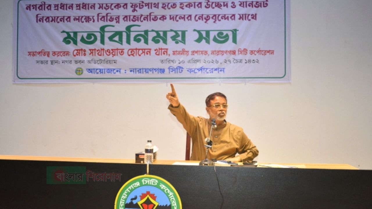 নারায়ণগঞ্জের প্রধান প্রধান সড়কের ফুটপাত হতে হকার উচ্ছেদ ও যানজট নিরসনের লক্ষ্যে বিভিন্ন রাজনৈতিক দলের নেতৃবৃন্দের সঙ্গে মতবিনিময় সভার আয়োজন করেছে নারায়ণগঞ্জ সিটি কর্পোরেশন প্রশাসক।
